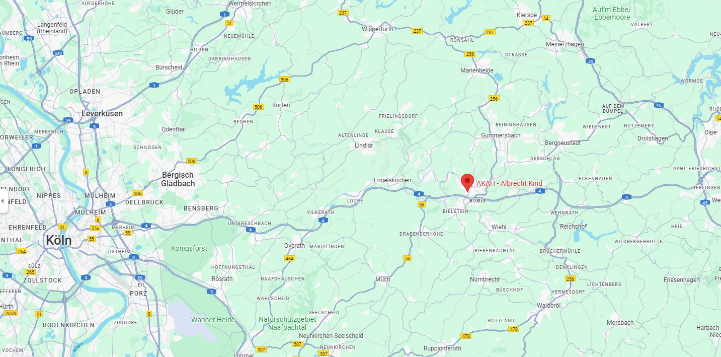 Über die Autobahn A4 von Köln oder Olpe Abfahrt Gummersbach in Richtung Wiehl. An der nächsten Ampel nach links in Richtung Industriegebiet Bomig abbiegen und der Straße bis zum Ende folgen. An der Kreuzung gegenüber der Spedition INTRA nach links in Richtung Oberbantenberg abbiegen. An der folgenden Kreuzung nach rechts in Richtung Gummersbach-Dieringhausen abbiegen. Im Ortsteil Hunstig die erste oder zweite Abzweigung nach links in die Hermann-Kind-Straße abbiegen.